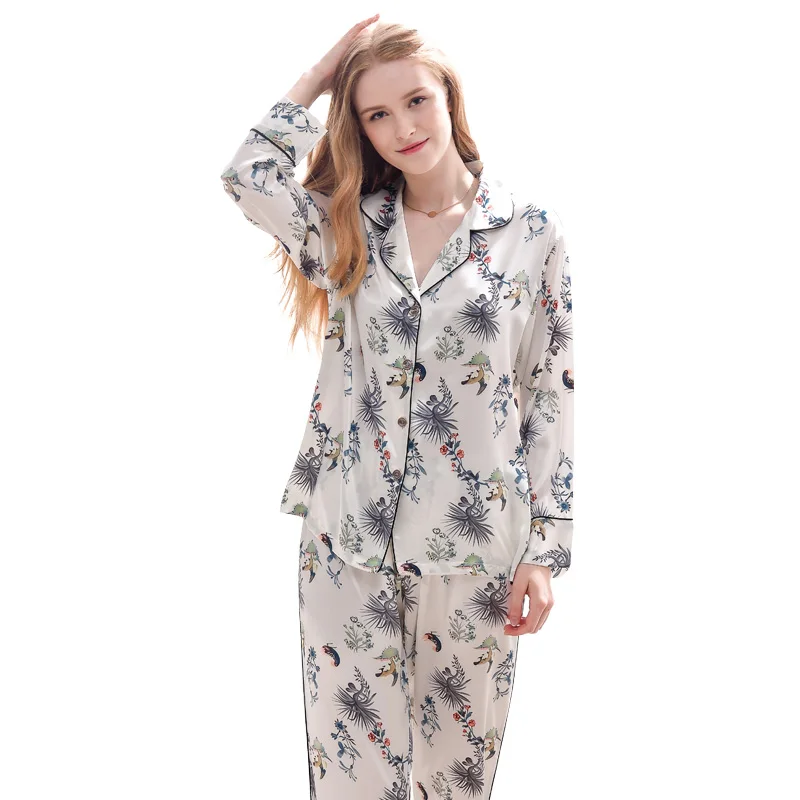 Xifenni Pajamas Faux Silk Sleepwear Women Satin SILK Fashion Printed Pyjama Sets Female Casual Simple Home Clothing 1732