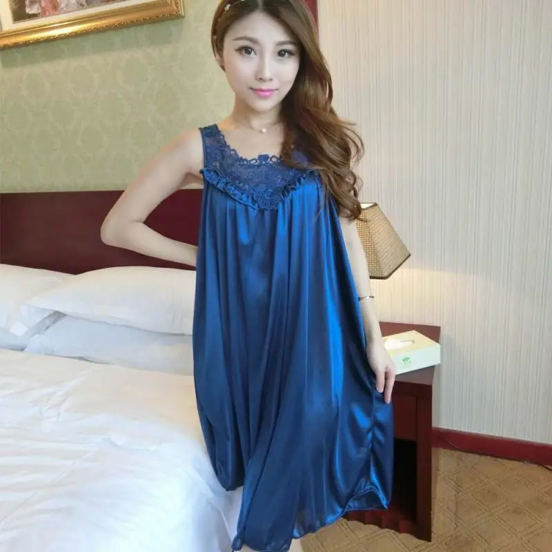 Yidanna Women nightgown Summer Sleepshirt Plus Size Lace Female Sleepwear Sexy Lady Silk Nighty Sleeveless Floral Sleep Clothing