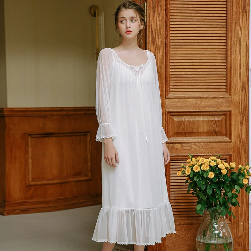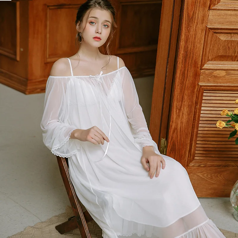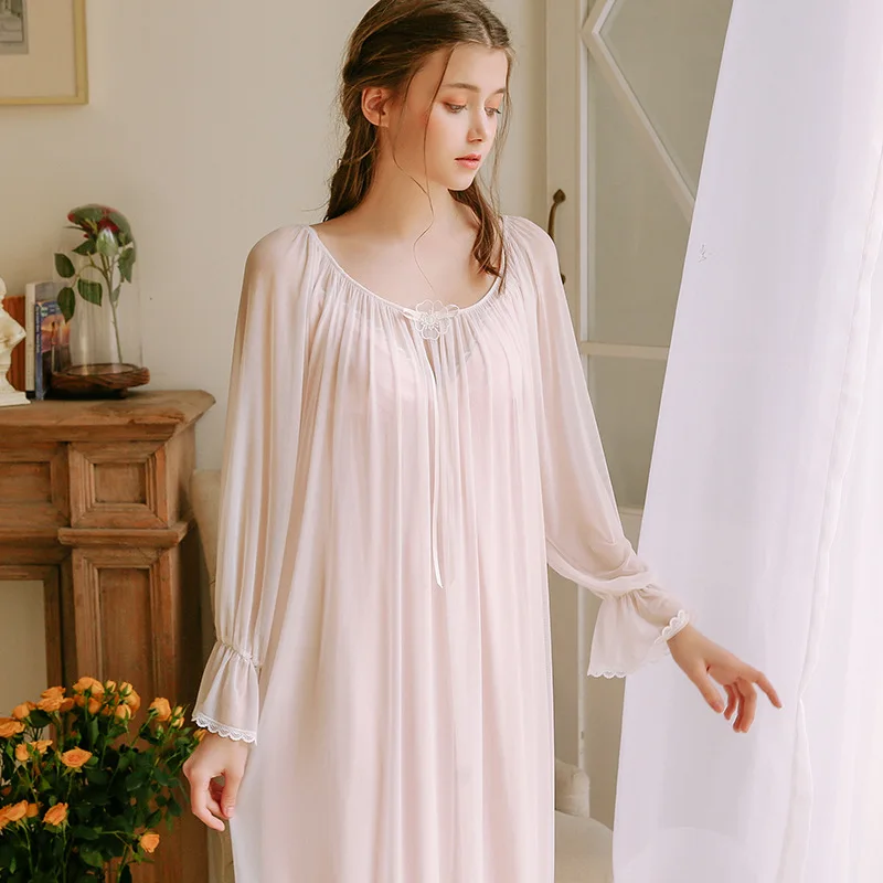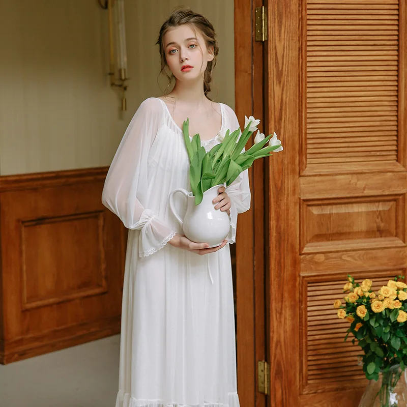 Cute Princess Pyjamas Two-Piece Female Spring Bud Silk Yarn Sexy Court Retro Sleeping Dress Woman's Sleepwear Nightgowns HZL61