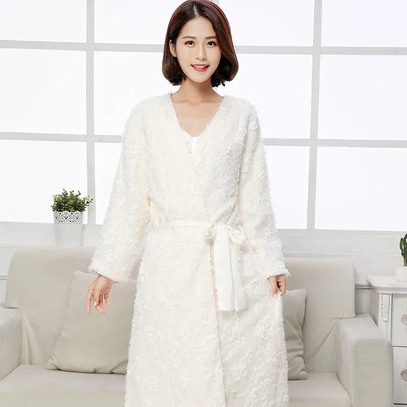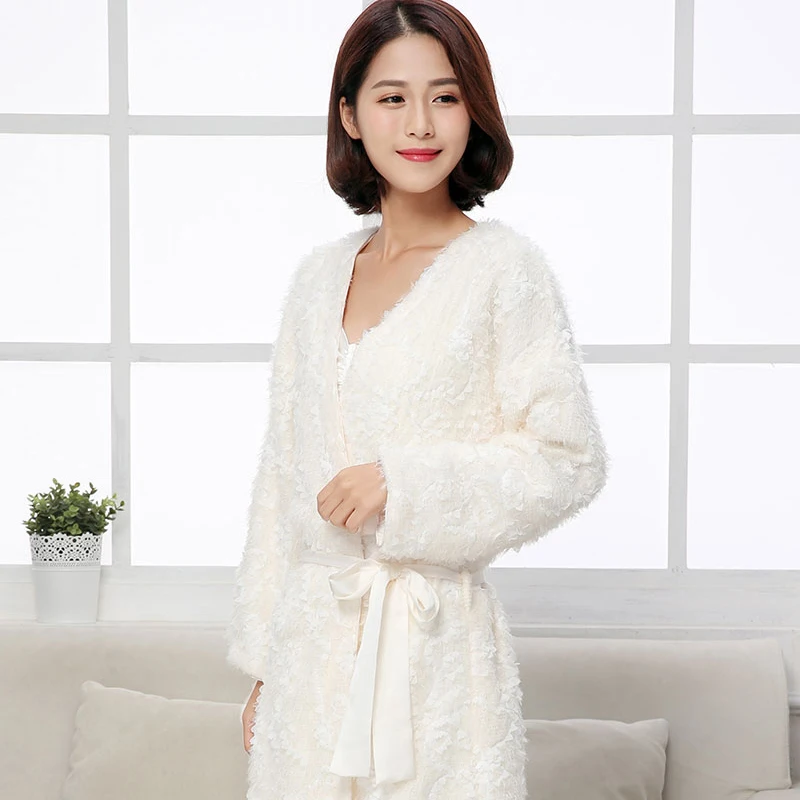2019 Spring Autumn SILK Sleepwear Female Sleeping Robe Warm Velour Bathrobes Thicken Winter Nightgowns Woman DS8018