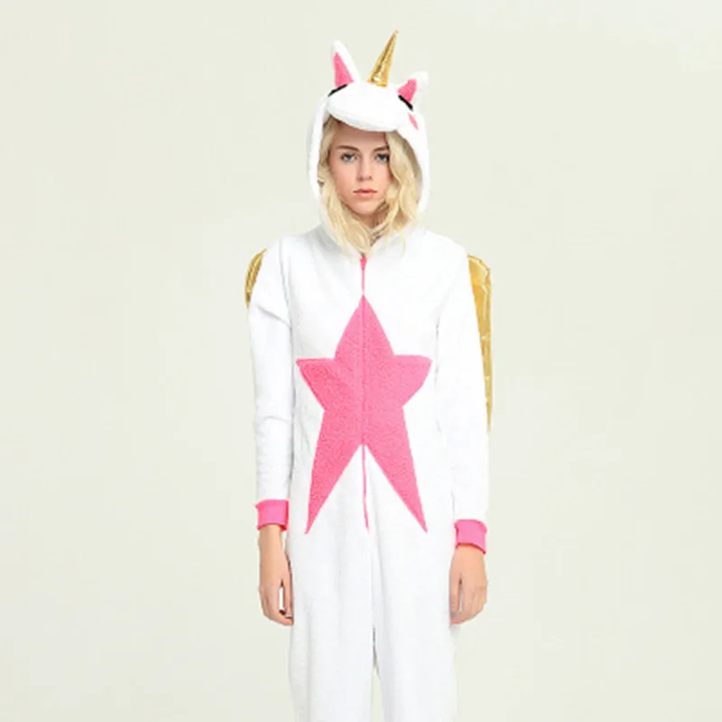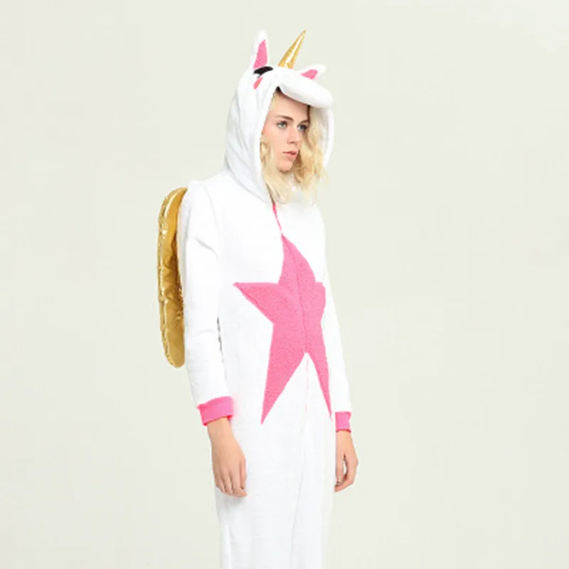 2018 Fashion Plush Unicorn Pajamas Set Gold Color Wing Polyester Full Trousers Lady Two Piece Female Pajama Set