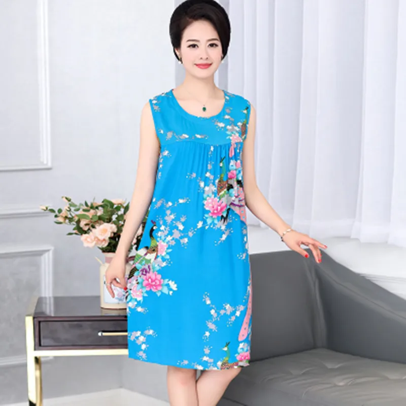 Mom Loose Cotton Nightgown Sleeveless Shoulder Casual Club Home Women Sleepwear Vestido Size 2019 Spring Top Fashion