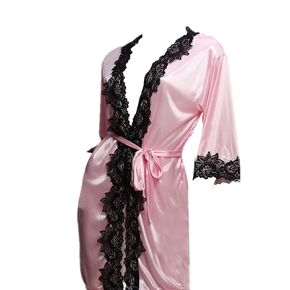 SNOWINSRPING IMC Sexy lace underwear night satin with string morning coat sleepwear
